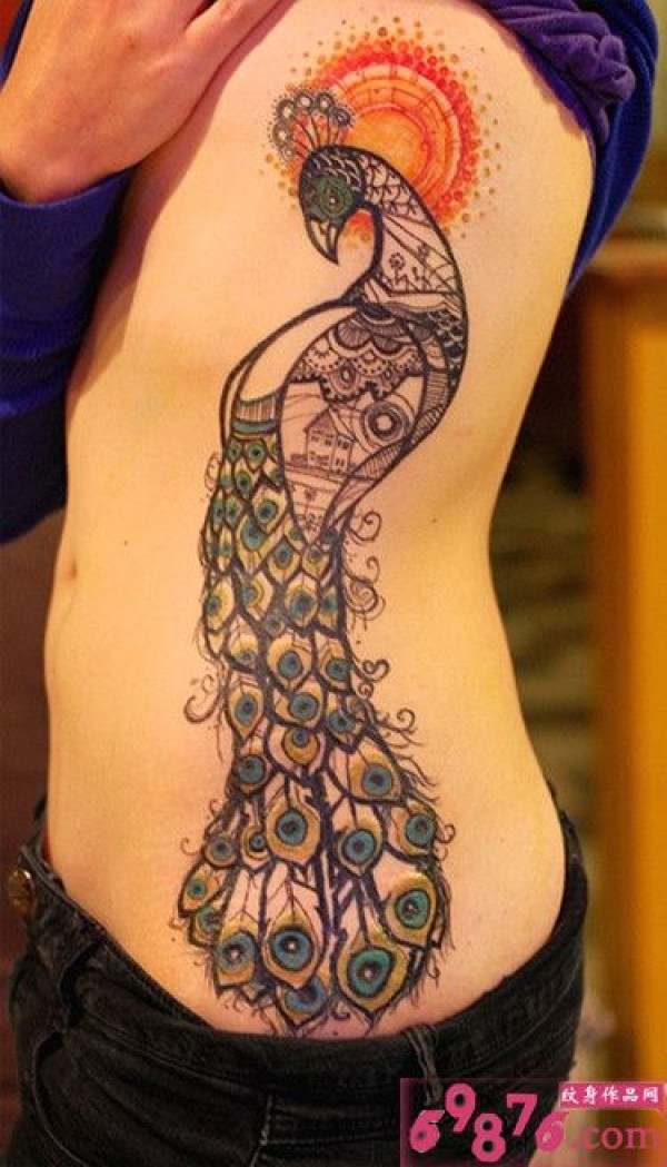 分享一款腰部时尚性感的蝶恋花纹身图案_腰部纹身图案大全_纹身图吧
