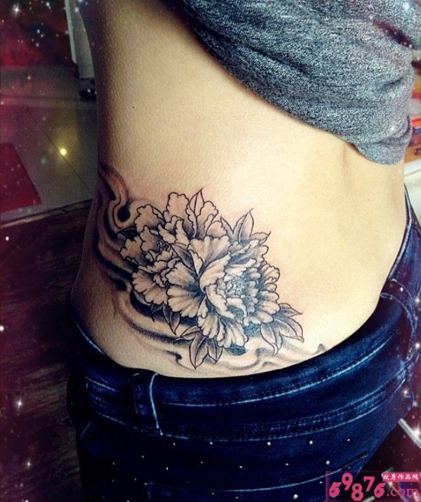 女性腰部莲花花纹刺青_腰部纹身图案大全_纹身图吧