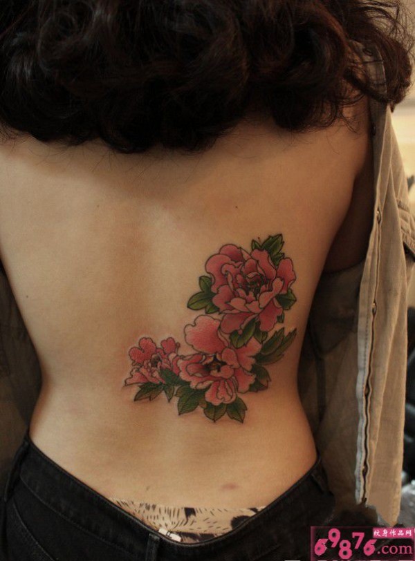女生玲珑腰部的依兰花图案纹身女生腰部嫣红底_腰部纹身图案大全_纹身图吧