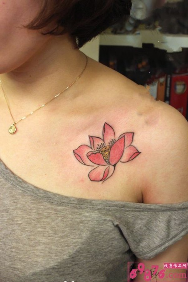 锁骨小清新莲花纹身图片
