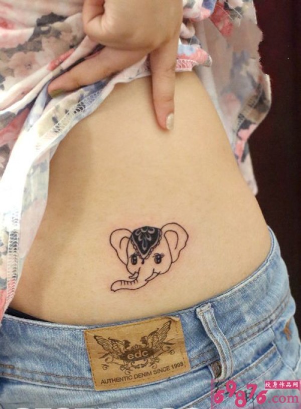 可爱小象头腰部纹身图片