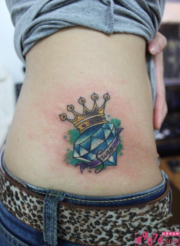 钻石皇冠个性腰部纹身图片