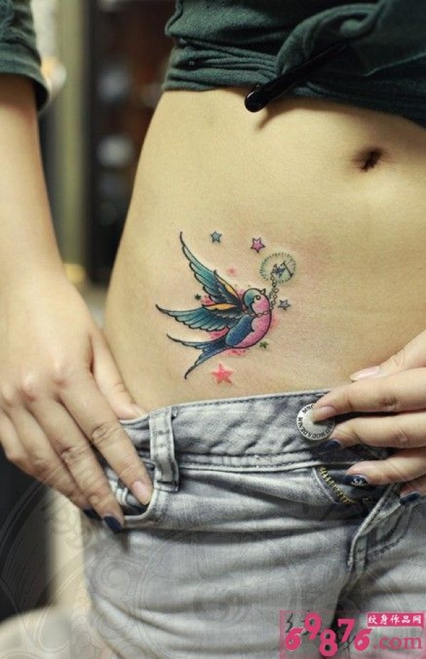 可爱燕子腰侧纹身图片