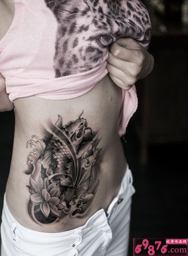 女性腰部莲花花纹刺青_腰部纹身图案大全_纹身图吧