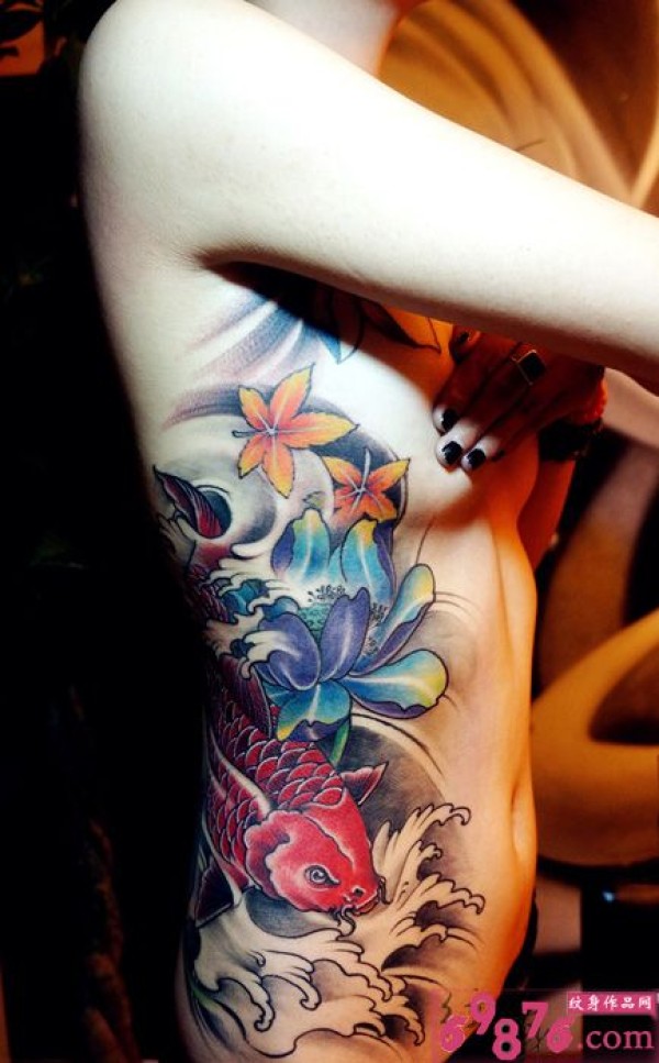 腰部创意鱼文身作品