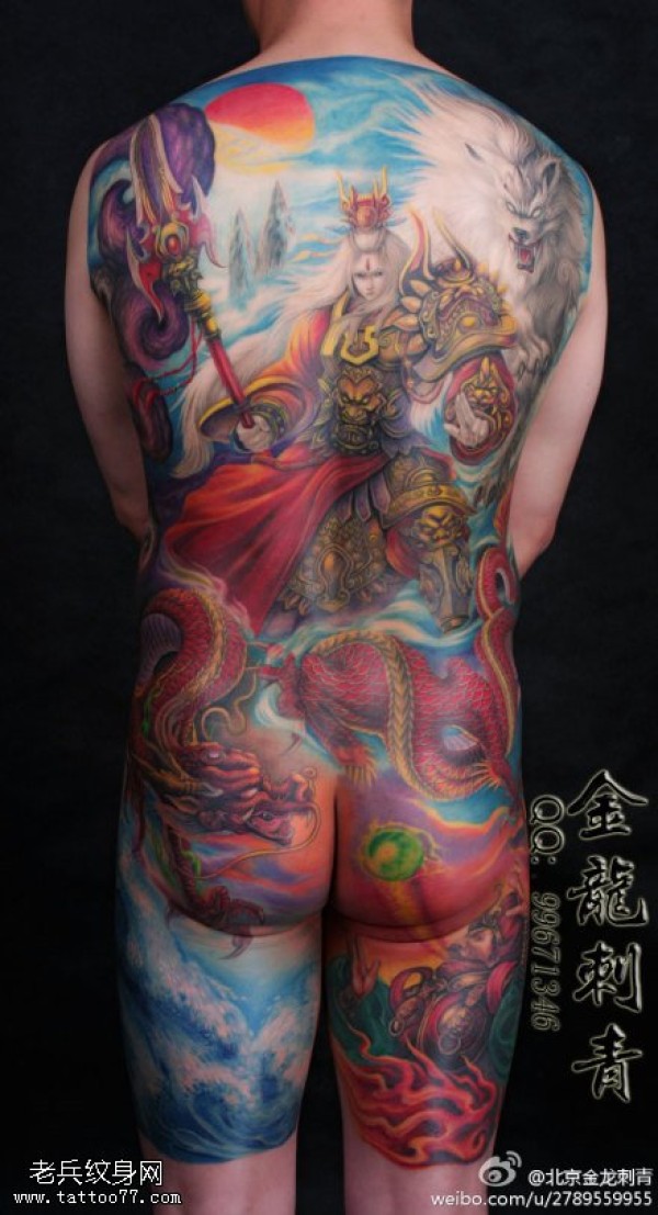满背超帅气卡通二次元日风二郎神哮天犬纹身图案
