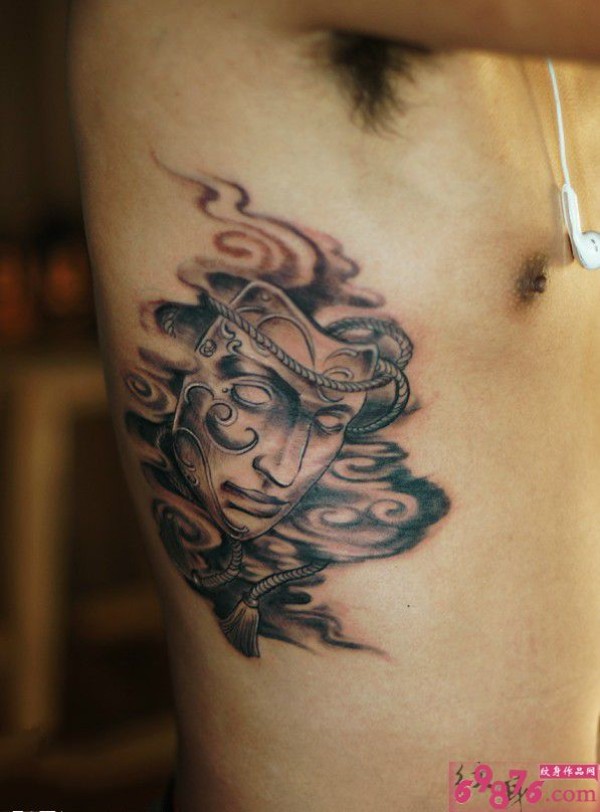 个性烟雾面具腰部纹身图片