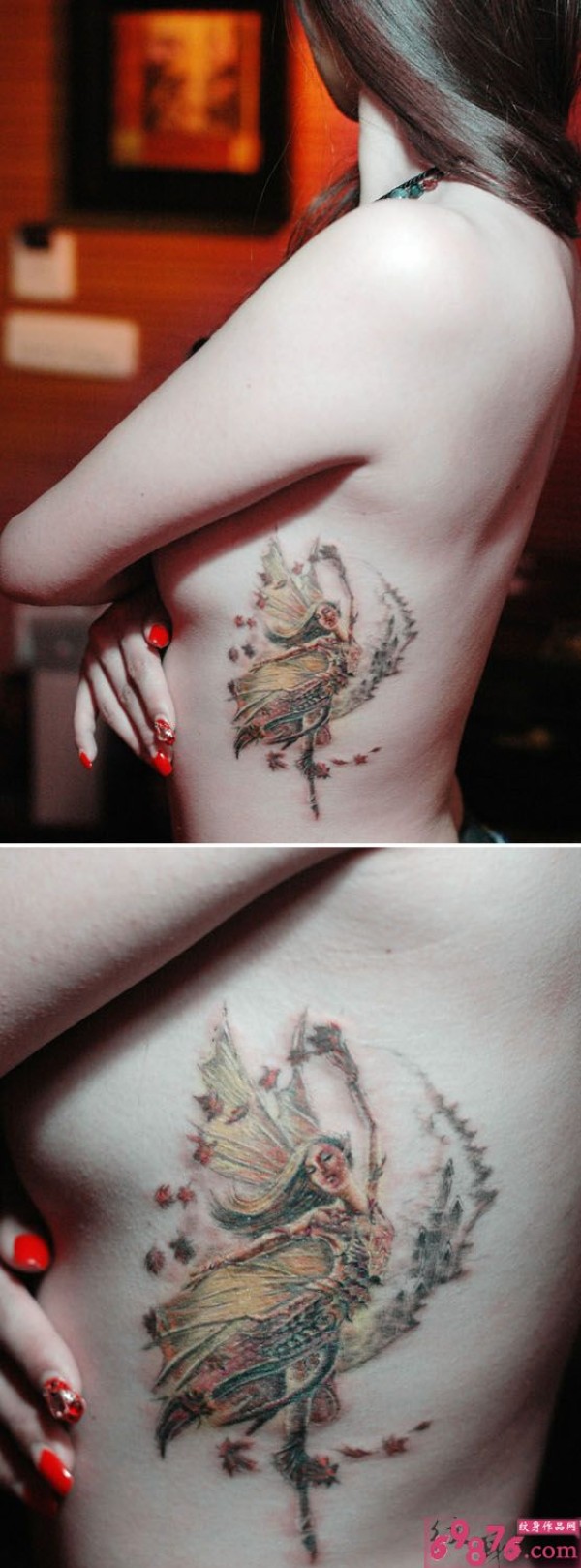 分享一款腰部时尚性感的蝶恋花纹身图案_腰部纹身图案大全_纹身图吧