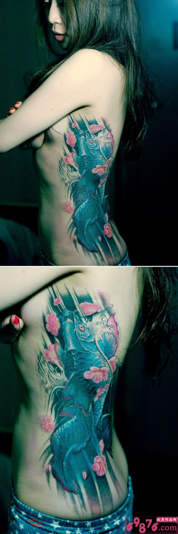 分享一款腰部时尚性感的蝶恋花纹身图案_腰部纹身图案大全_纹身图吧