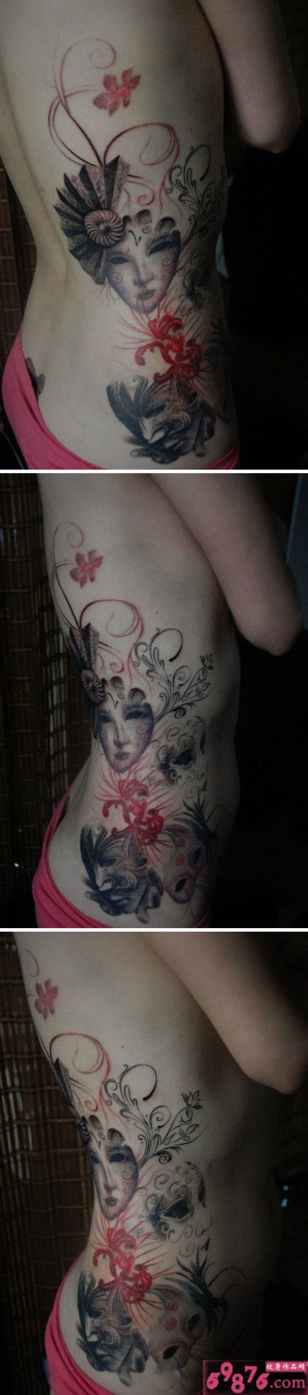 水墨风创意面具唯美腰部纹身图片