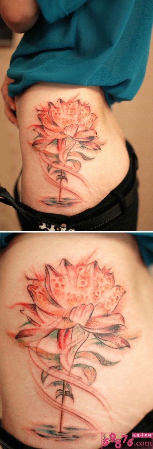 女性腰部莲花花纹刺青_腰部纹身图案大全_纹身图吧