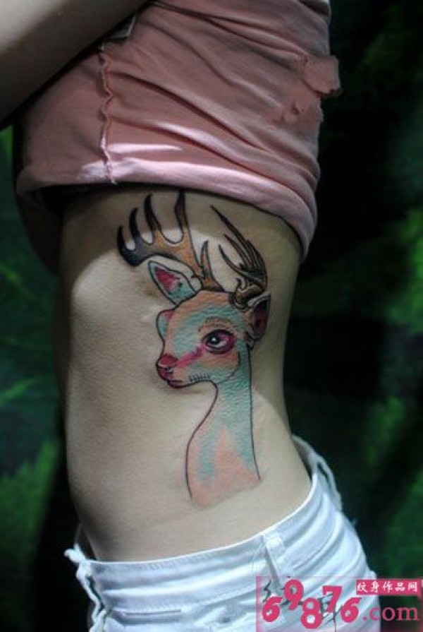 创意彩色麋鹿腰部纹身图片