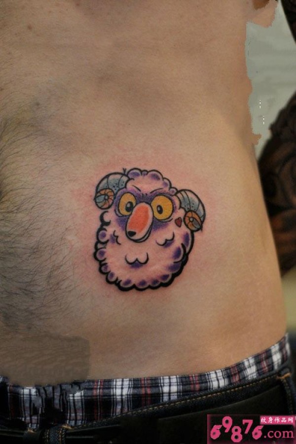 可爱小绵羊侧腰纹身图片