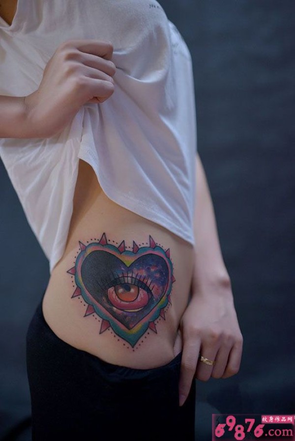 创意牛角爱心眼睛腰部纹身图片