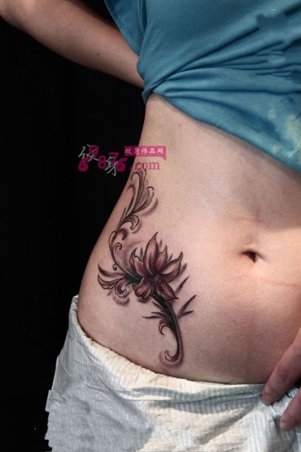 女性腰部莲花花纹刺青_腰部纹身图案大全_纹身图吧