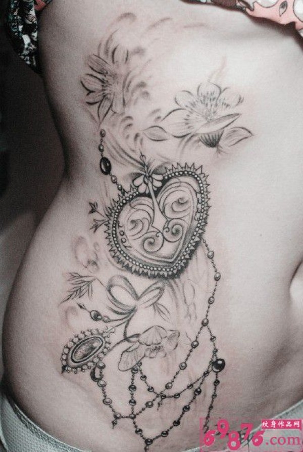 分享一款腰部时尚性感的蝶恋花纹身图案_腰部纹身图案大全_纹身图吧