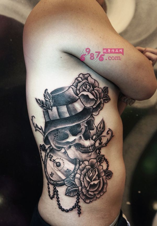 侧腰女骷髅刺青图案图片_骷髅纹身图案大全_纹身图吧