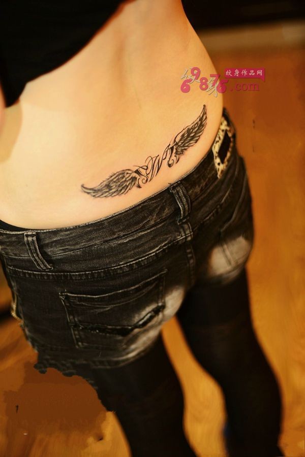 分享一款腰部时尚性感的蝶恋花纹身图案_腰部纹身图案大全_纹身图吧