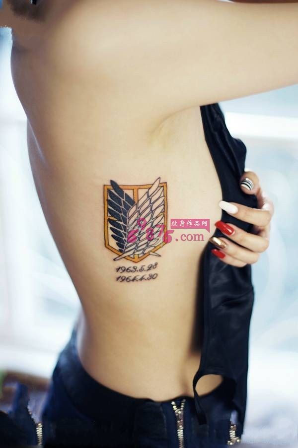 分享一款腰部时尚性感的蝶恋花纹身图案_腰部纹身图案大全_纹身图吧