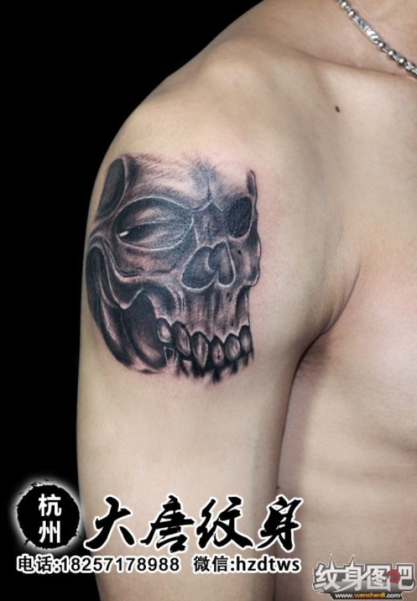 黑灰立体纹身_骷髅纹身作品【杭州大唐纹身】