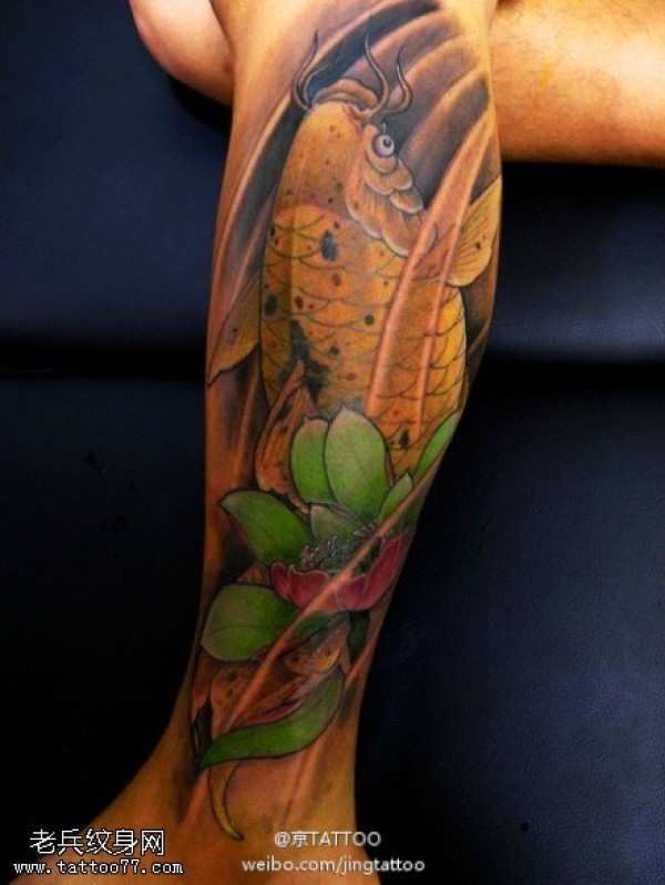 传统鲤鱼花小腿纹身_腿部纹身图案大全_纹身图吧