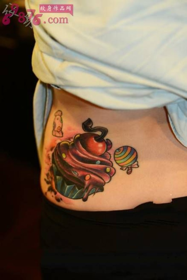 分享一款腰部时尚性感的蝶恋花纹身图案_腰部纹身图案大全_纹身图吧
