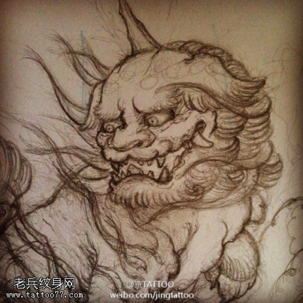 青面獠牙长角般若纹身图案手稿