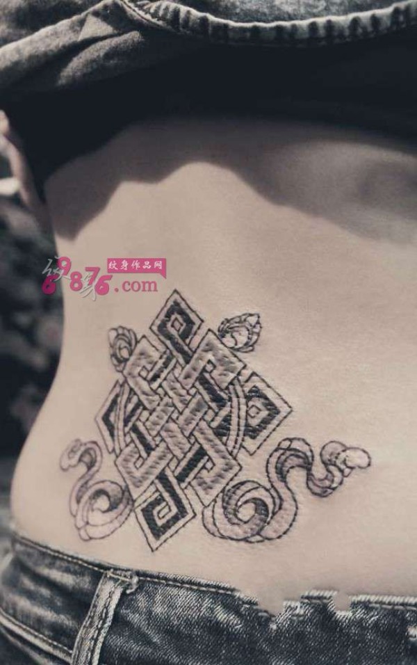女生后腰纹身黑白灰风格抽象线条纹身图案