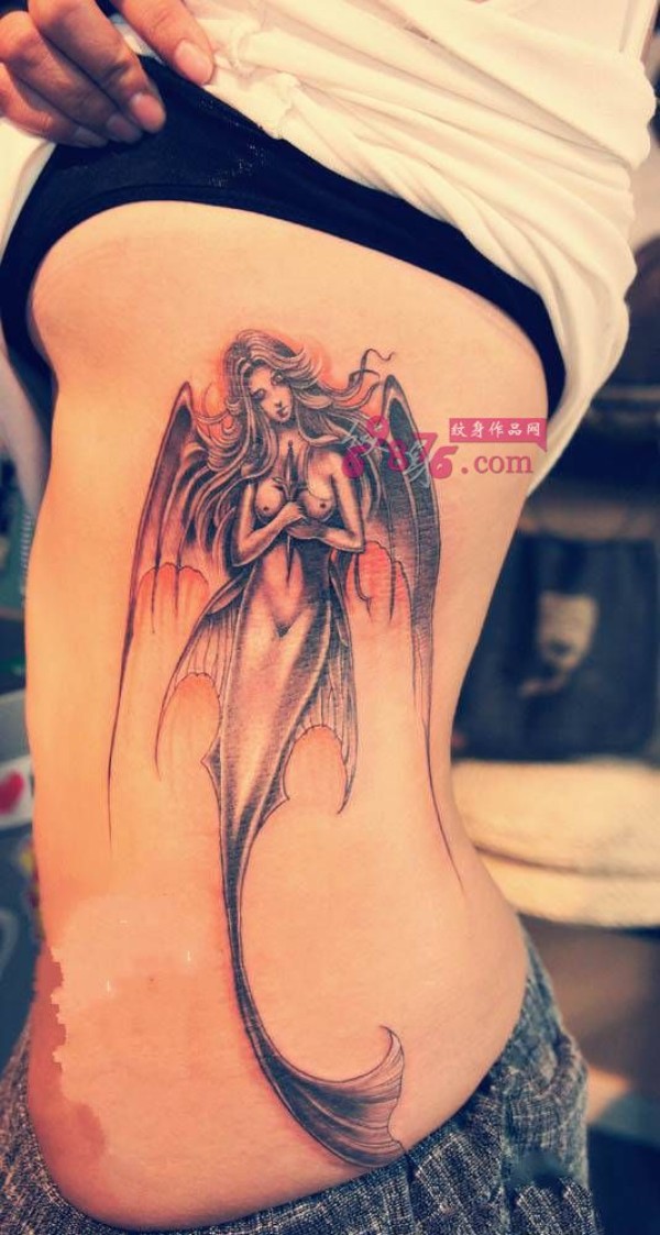 分享一款腰部时尚性感的蝶恋花纹身图案_腰部纹身图案大全_纹身图吧