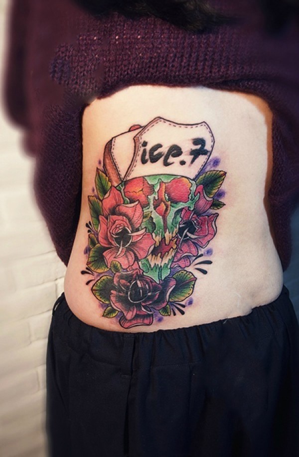 另类创意侧腰玫瑰纹身图片