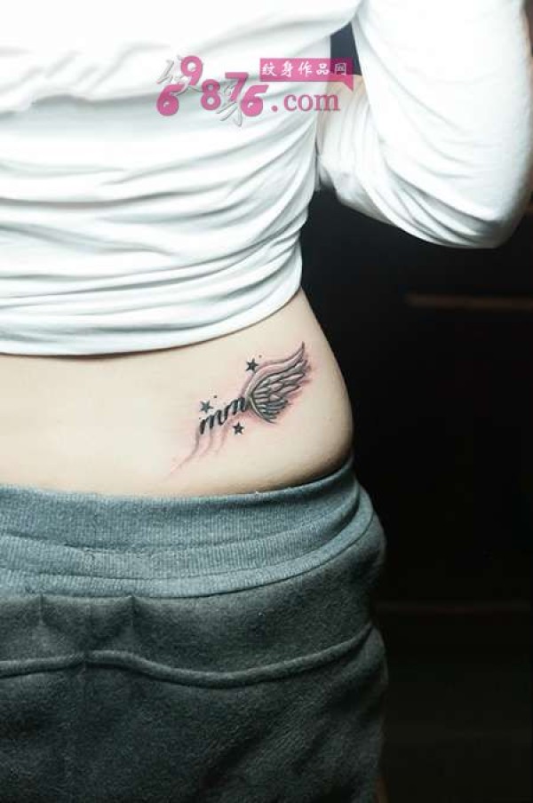 小清新天使翅膀侧腰纹身图片