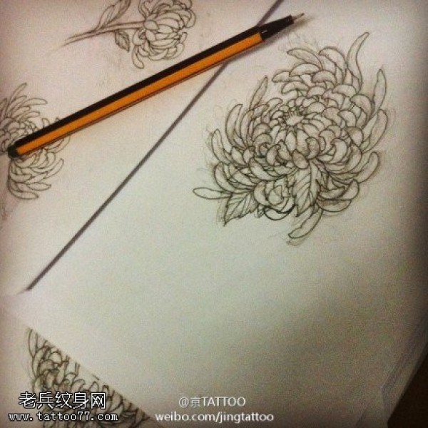 高洁淡雅菊花纹身图案手稿