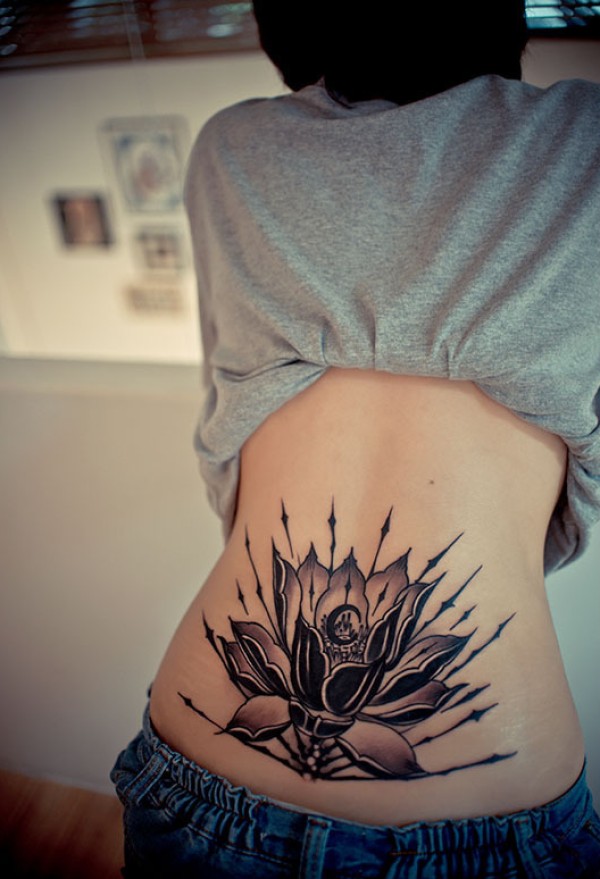 女性腰部莲花花纹刺青_腰部纹身图案大全_纹身图吧