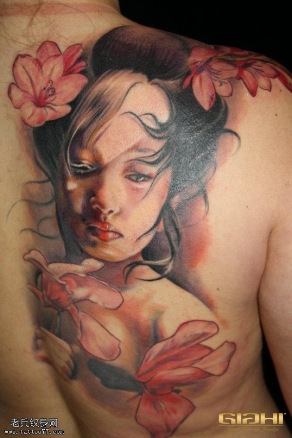 性感女生满背创意文身作品