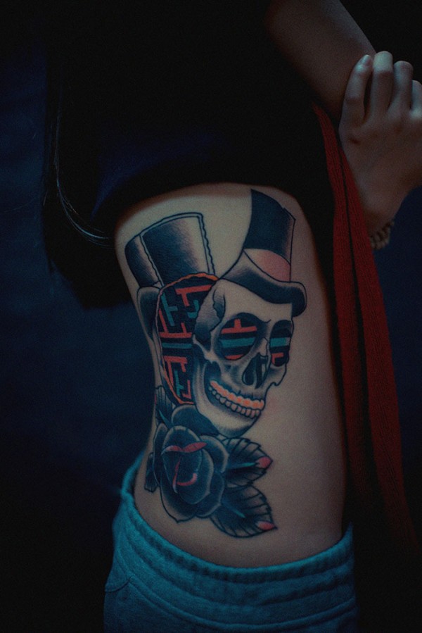 侧腰女骷髅刺青图案图片_骷髅纹身图案大全_纹身图吧