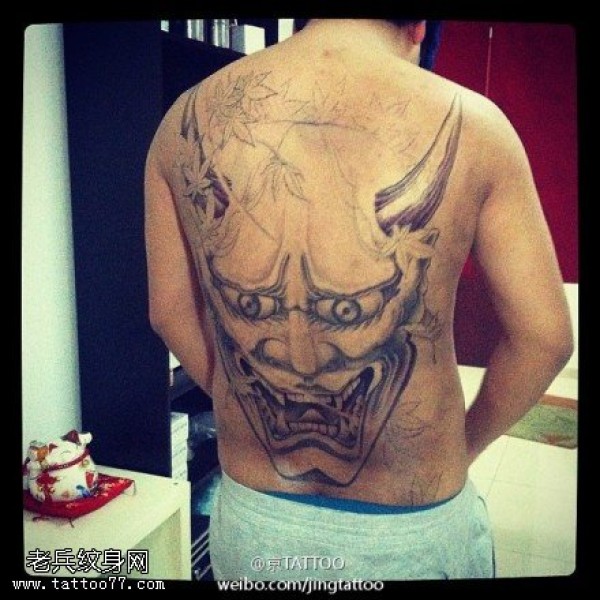 面部狰狞长牙般若纹身图案