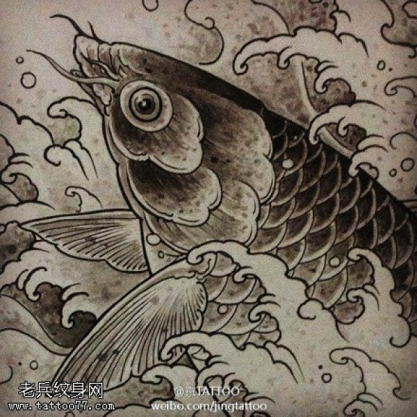 精致清晰鲤鱼纹身图案手稿