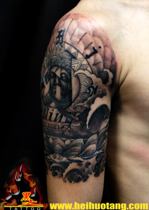 花臂弥勒佛纹身图案