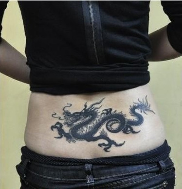 东方性感大姐大腰部黑龙纹身