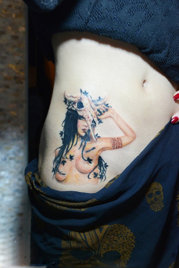 女性腰部莲花花纹刺青_腰部纹身图案大全_纹身图吧