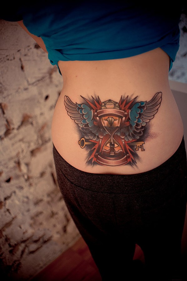 分享一款腰部时尚性感的蝶恋花纹身图案_腰部纹身图案大全_纹身图吧