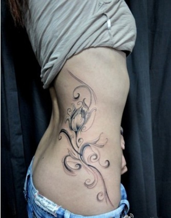 女性腰部莲花花纹刺青_腰部纹身图案大全_纹身图吧
