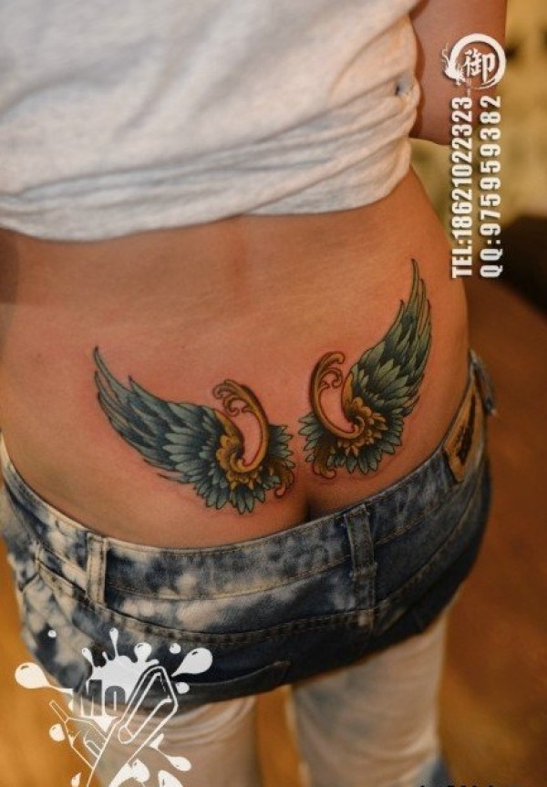 分享一款腰部时尚性感的蝶恋花纹身图案_腰部纹身图案大全_纹身图吧