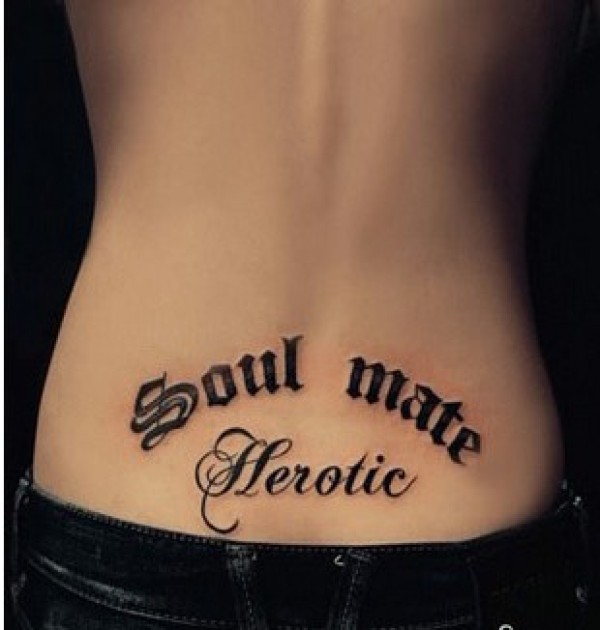 女生后腰纹身黑白灰风格抽象线条纹身图案
