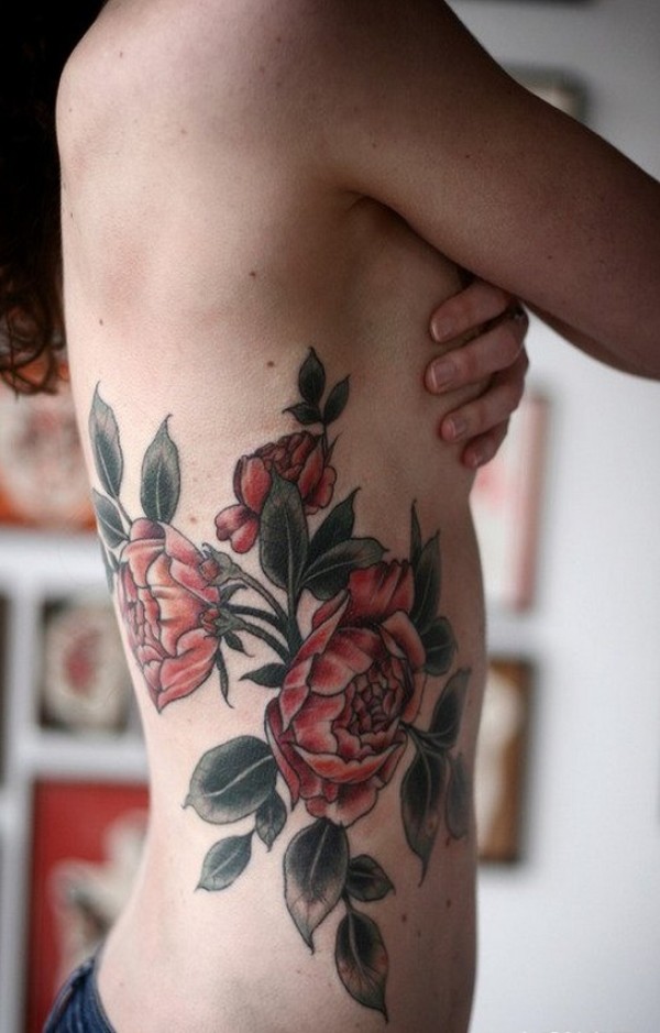 一款侧腰玫瑰花纹身图案