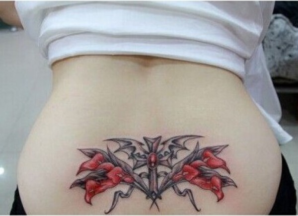 分享一款腰部时尚性感的蝶恋花纹身图案_腰部纹身图案大全_纹身图吧