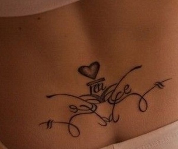 女生后腰纹身黑白灰风格抽象线条纹身图案