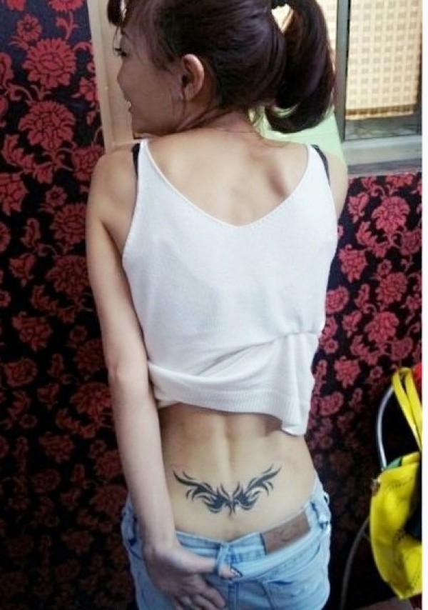 女生后腰纹身黑白灰风格抽象线条纹身图案