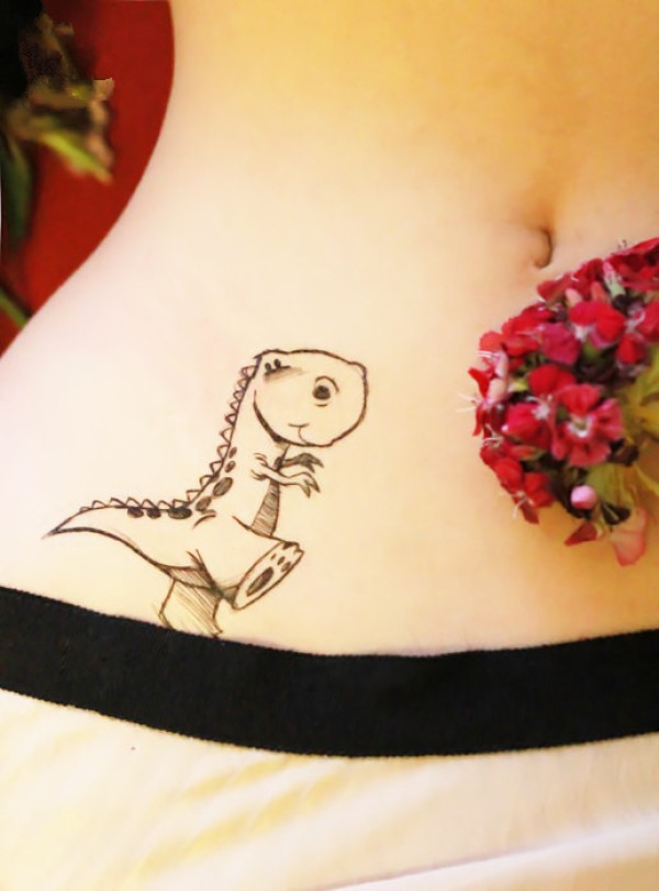 女生腹部小恐龙纹身