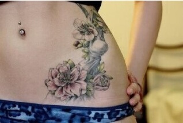 女性腰部莲花花纹刺青_腰部纹身图案大全_纹身图吧